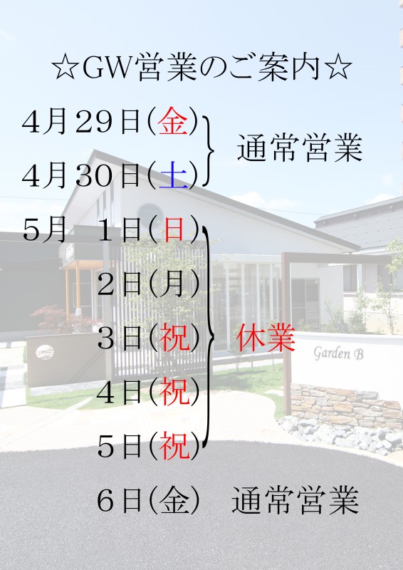 明日29日(祝日)からGWゴールデンウィークがスタートします。